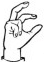 На ћирилици написано ДРАГАНА КУРМАЗОВИЋ састоји се из 17 слова [?]. Исписано ћириличном једноручном азбуком за глувонеме:
